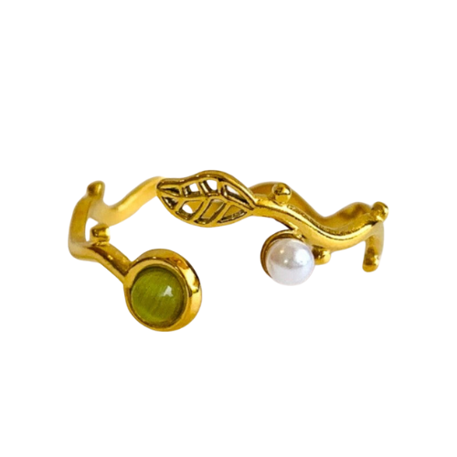 Jemný prsten FLOWER green pearl je symbolem ženské elegance a decentního stylu. Ať už ho nosíte samostatně nebo v kombinaci s dalšími prstýnky, vždy dodá vašemu vzhledu sofistikovanost.